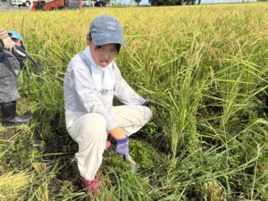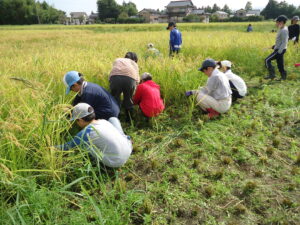 不慣れな刈り取り作業でしたが、子供たちは暑さにも負けずに頑張って活動していました。